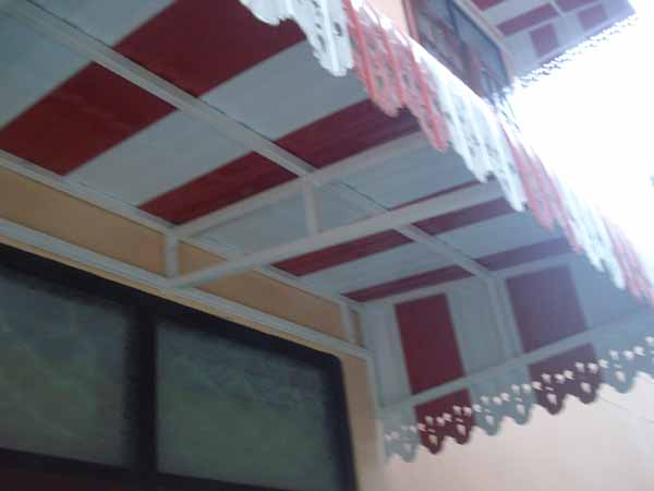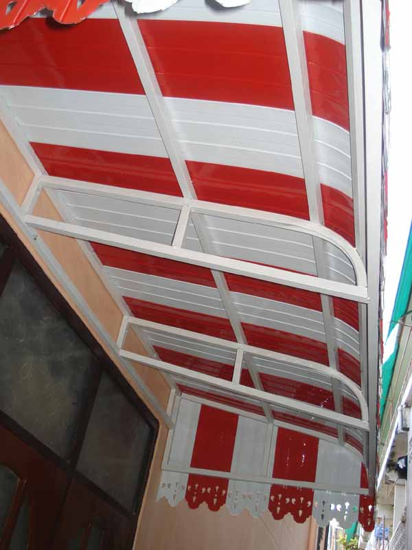 Our parent company makes the latest rooves: these are overhangs or verandah roofs which come in a side view J style. A bit like the wild west these rooves are bent on a 45 degree angle and you can still put gutterings on them. We make in Thailand as a kitset to suit your outside ranchslider or French doors or just for that verandah to keep the rain out. Can be any width sections but only 1m out from the building due to the new NZ codes,+ any colour. The frames are now have to be made from stainless steel and these are painted in Thailand ready to ship to New Zealand home owners. The costs to you are cheaper than anything made in NZ and you can install yourself or we will do it for you. Being able to buy your building supplies off us direct imports from Thailand is a home owners plus but check the pics below and you tell us what you think.